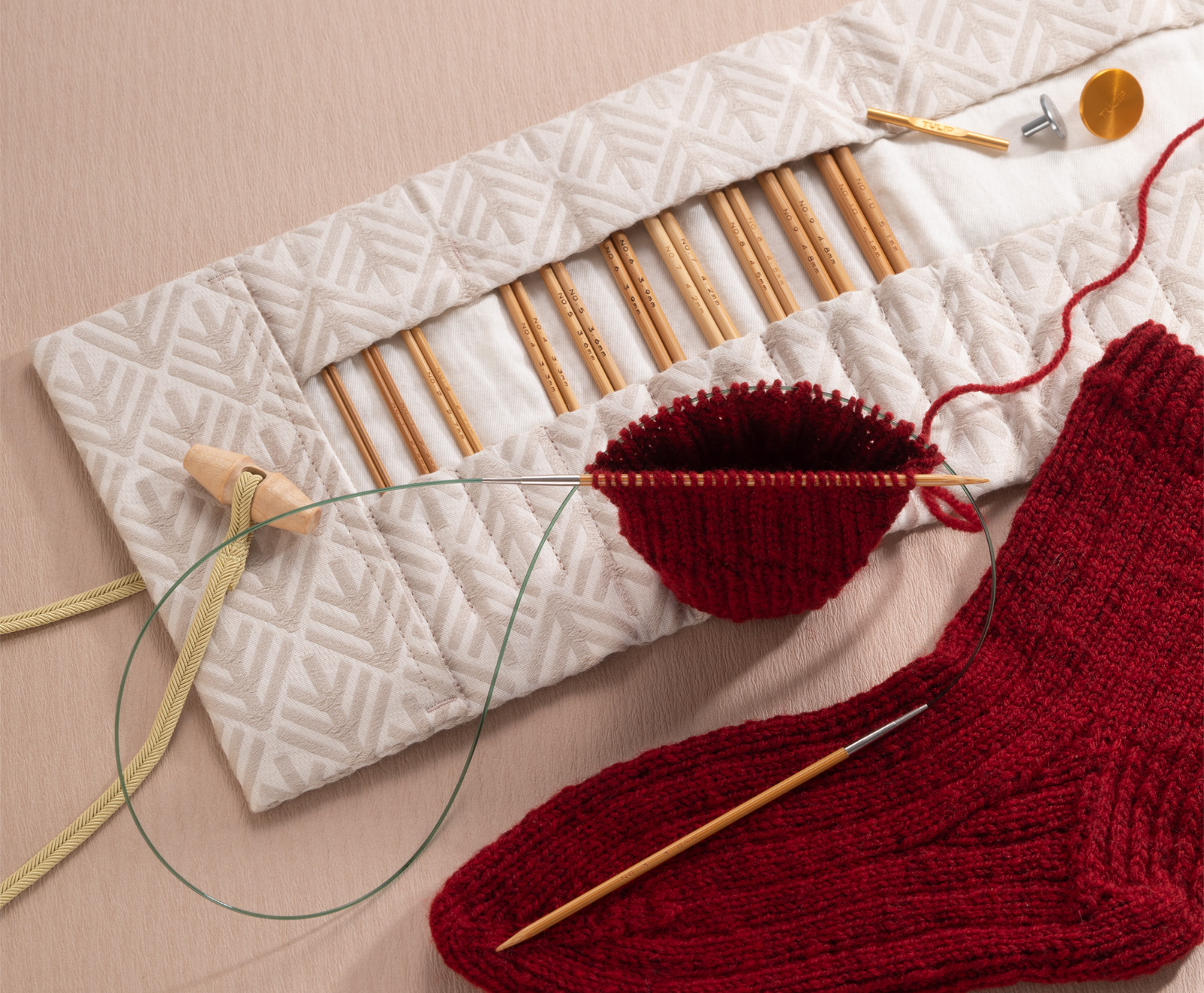 「編み針キャップ」は、編み物中に休憩する際や、持ち歩きの時に竹針の先につけておくと、大切な編み目を落としません。