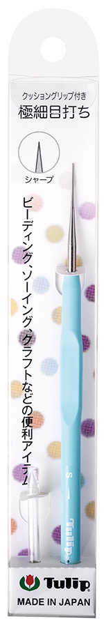 「クッショングリップ付き極細目打ちS ミント」は、あらゆる手芸の場面で役に立ち、持っていると便利なグッズです。